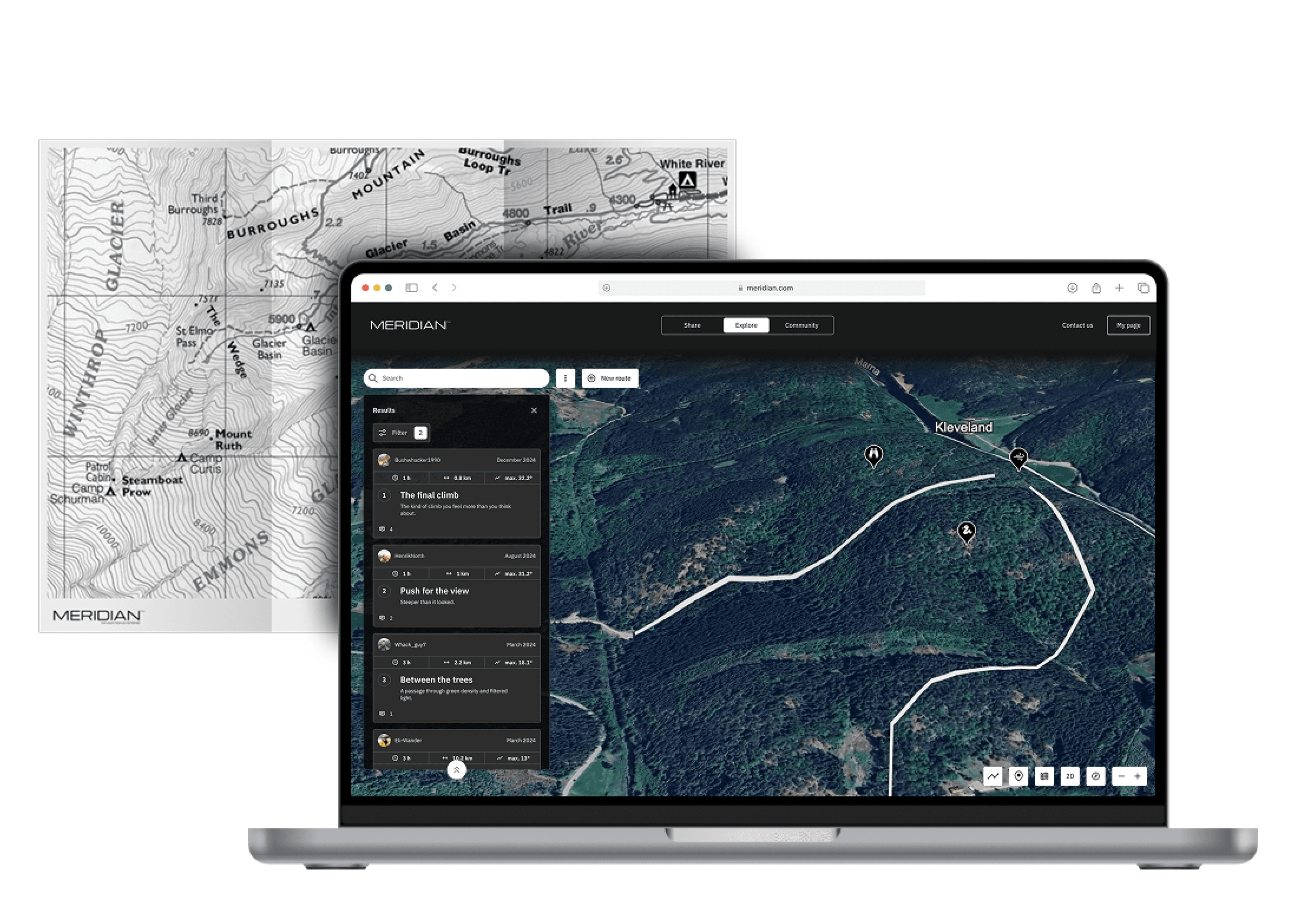 Meridian.com is where users can browse and create routes before their journey.