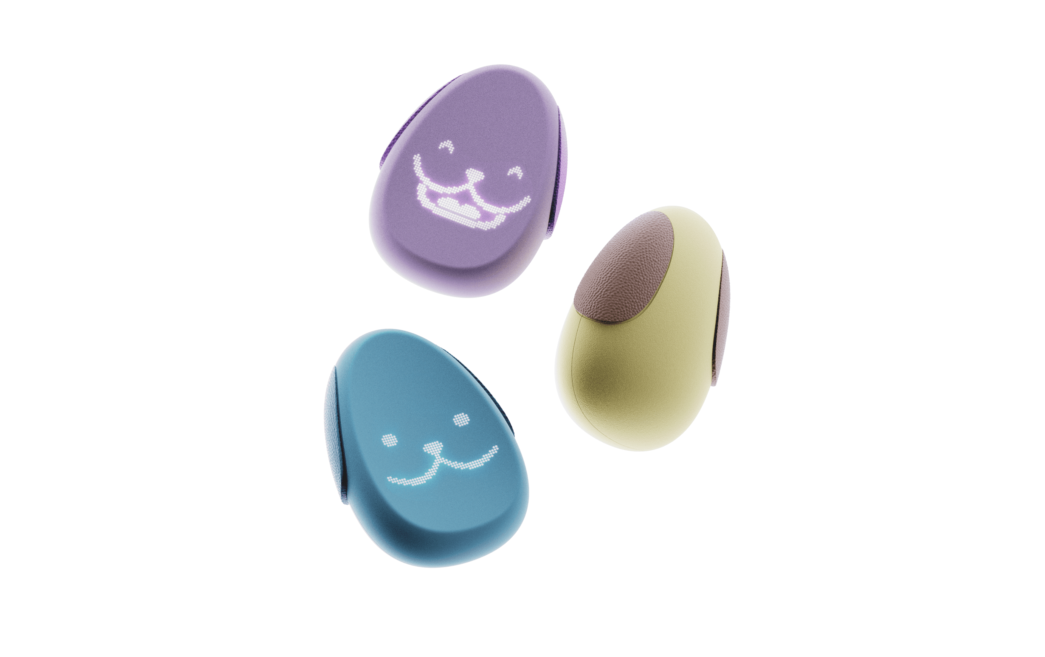 Physical contact or consistent pressure triggers therapeutic vibration patterns. The animated face cycles through breathing visuals to guide inhalation and exhalation.Combined haptic, visual, and tactile stimuli synchronize user breathing and redirect cognitive focus.